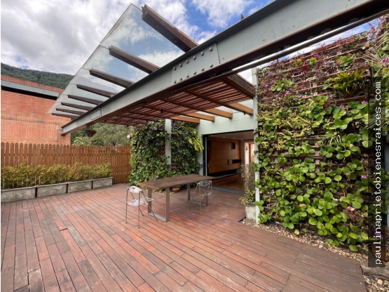 Moderno Penthouse dúplex con terrazas y jardines verticales, diseño arquitectonico, 6 piso, 340m2 incluidos balcones más 78m2 de terraza, tres habitaciones cada una con su baño, ppal con walk-in-closet, sala comedor con doble altura integrado a terraza cubierta, ventanales de piso a techo, baño social, family room con biblioteca, sala de estar con chimenea, cocina cerrada con línea blanca, cuarto y baño de servicio y zona de lavanderia, tres parqueaderos y deposito amplio, ascensor directo.