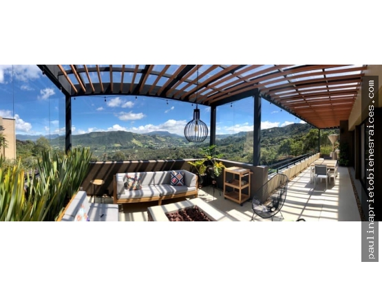 Conjunto residencial a las afueras de la ciudad nos ofrece casa de 2 niveles en lote semi plano rodeado de amplio jardín y vista hacia las montañas, nos recibe la zona social con sala y comedor independientes, cocina, baño auxiliar, CBS, área de ropas, tiene terraza cubierta con pérgola y chimenea, family room, 3 habitaciones amplias cada una con su baño, 3 garajes, depósito, calefacción en toda la casa, ventaneria termo acústica, puerta de seguridad, planta eléctrica de suplencia total. UNA VIDA DIFERENTE MUY CERCA A LA CIUDAD